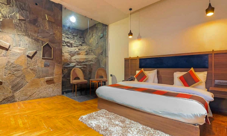 The Stone Castle at The Mountain Paradise Resort in Almora is a cozy and elegant accommodation option. It features a king-sized bed, modern amenities, and a serene ambiance, making it perfect for a relaxing stay. The room spans approximately 220 sq. ft. and offers all modern comforts.