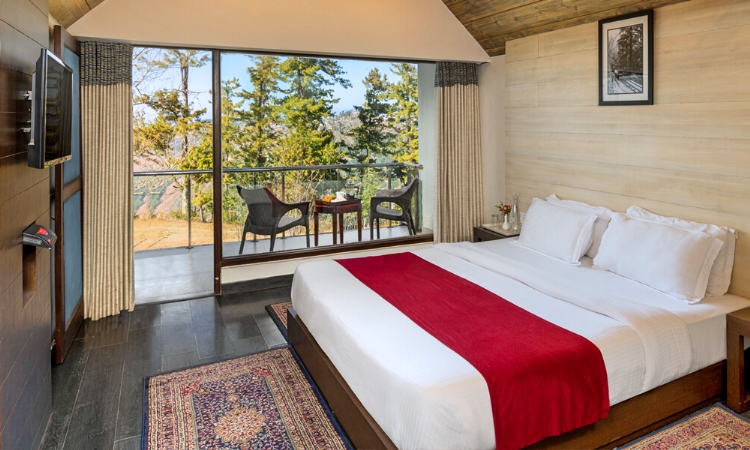 The Deluxe rooms at Koti are great for couples. Just a ted bit smaller than the Suites, Deluxe Rooms are equally comfortable in every way. The rooms have balconies with wonderful mountain views, furnished with cabin-inspired interiors. Best for relaxed vacations.